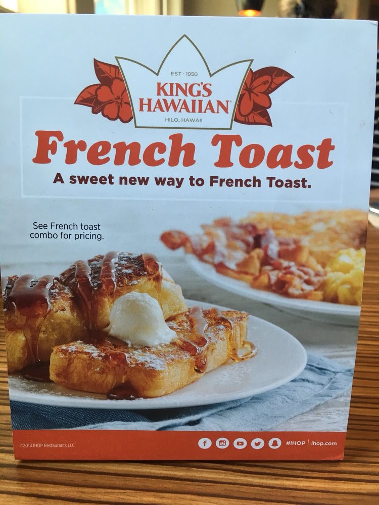 4 servings each of scrambled eggs and golden hash browns, 8 hickory-smoked bacon strips, 8 pork sausage links, and 4 slices of Thick N Fluffy Original French Toast.Available for IHOP N GO only. Not available for dine-in.